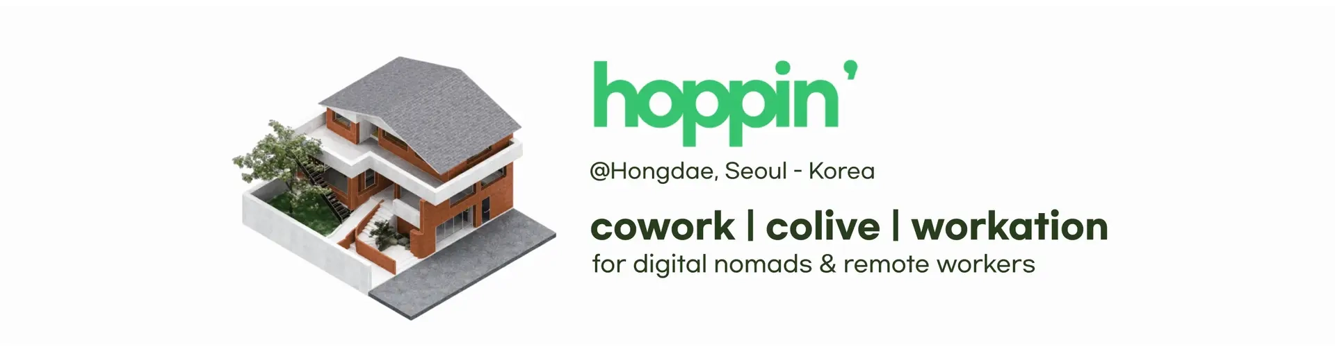 Through our ecosystem, Hoppin, Hoppin House, and Digital Nomads Korea, we connect nomads, creators, and entrepreneurs to co-live, co-work, and co-grow.