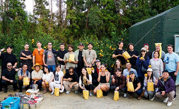 Global digital nomads participating in a tangerine picking experience in Jeju. ⓒHeadline Jeju